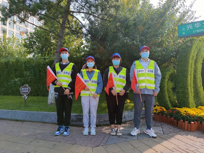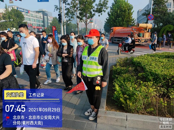 早晨7到9點是上班的高峰期,黃村西大街地鐵站路口來往的行人和車輛都很多,經(jīng)過交警的培訓指導,華騰化工團員青年欣然值守在斑馬線旁,大家不斷提醒行人要走斑馬線,提醒車輛要禮讓行人,并攙扶行走不便的大爺大媽過馬路。