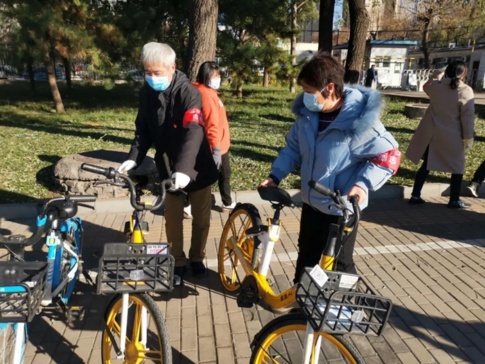 華騰丹陛華公司所在東四環輔路路段,共享單車數量較多,時有亂停亂放現象發生,影響公眾安全出行。為此,華騰丹陛華公司第二黨支部與所在的廣華社區共同發起了這一文明行動。大家走上街頭,將亂停亂放的單車一輛一輛地歸位、碼放好,同時向騎行的人員宣傳規范停車對人們出行安全,以及提升社會環境的好處。