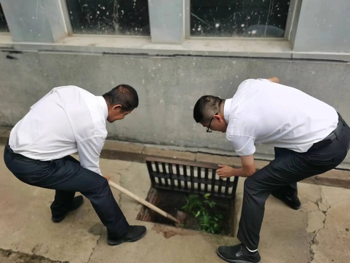 在接到暴雨紅色預(yù)警后,各事業(yè)部迅速行動(dòng),對(duì)樓宇屋面、排水管道、下水井等進(jìn)行細(xì)致檢查,及時(shí)清理雜物,同時(shí)各事業(yè)部迅速將防汛物資補(bǔ)充到可能發(fā)生汛情的低洼位置,以便出現(xiàn)險(xiǎn)情第一時(shí)間救援。