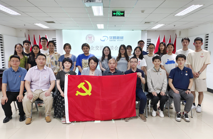 在深入開展學習貫徹習近平新時代中國特色社會主義思想主題教育之際,6月19日,中國人民大學理學院黨委書記馮詩松帶領老師學生代表一行14人赴華騰新材公司交流調研,華騰新材公司黨總支書記齊小麗、總工程師崔正、董事會秘書金東旭及相關部室負責人接待馮詩松一行。