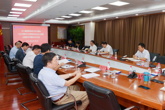8月28日下午,北京化工集團黨委召開學習貫徹習近平新時代中國特色社會主義思想主題教育專題民主生活會,黨委書記、董事長陳宇主持會議并作總結講話,市委第22巡回指導組組長劉久剛作點評講話,副組長方子虹、組員郭威到會指導。