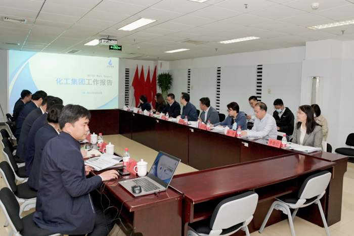 在接下來召開的調(diào)研座談會上,曾勁一行聽取了北京化工集團(tuán)的工作匯報。