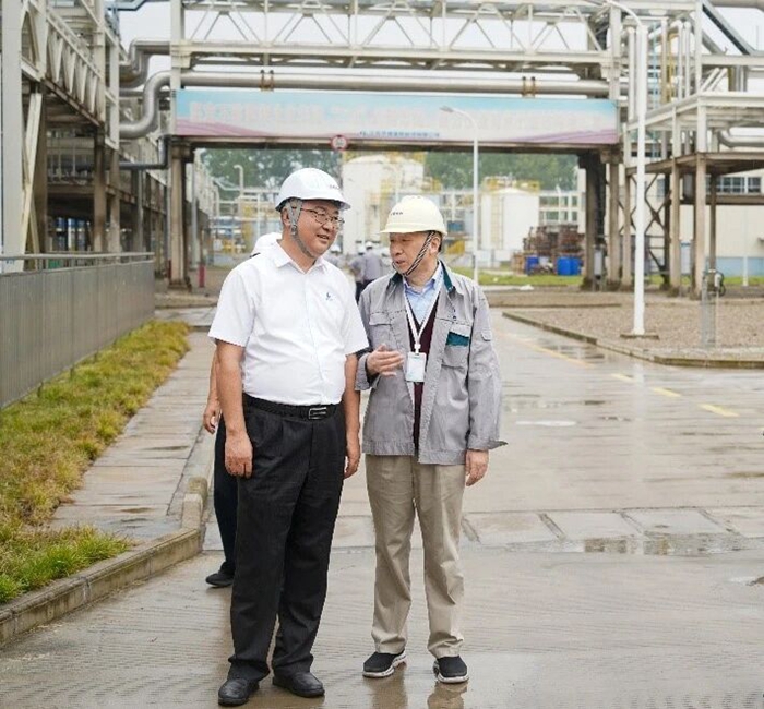 9月25日,北京化工集團黨委書記、董事長陳宇,黨委副書記吳瑞峰專程來到江蘇泰興,實地調(diào)研京騰昊樺安全生產(chǎn)情況。陳宇一行走進生產(chǎn)裝置現(xiàn)場,仔細(xì)了解現(xiàn)場生產(chǎn)和安全運行情況。